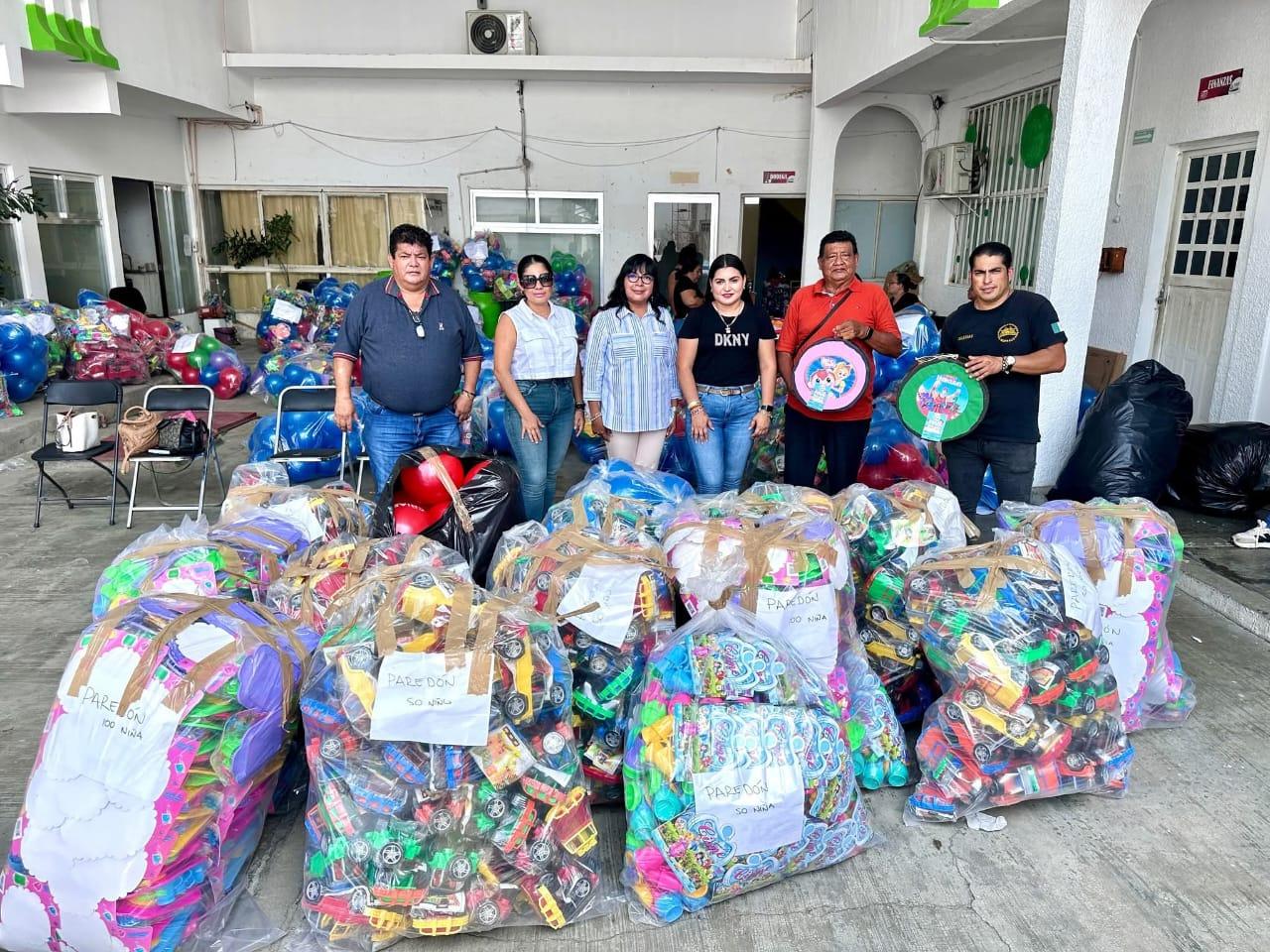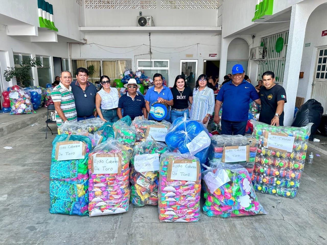 La presidenta del DIF, Beatriz Janisse Iglesias Valdiviezo, acompañada de la síndico Guisella Toro y Regidores Saramar Decuir, Alfredo de Aquino, Homero Corzo, Francisco Ruíz, Miguel Ángel López y Tonia Prado, hicieron entrega de juguetes a los agentes municipales, con el objetivo de llevar alegría a las niñas y niños de las diferentes comunidades, en el marco del Día del Niño.