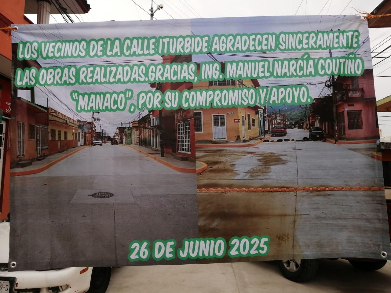 El día de ayer acompañado de la síndico Guisela Toro de la Cruz, llevó a cabo la inauguración de la calle Iturbide, entre rayón y avenida Guerrero, obra con pavimento de concreto hidráulico, banquetas, alumbrado público, boyas reductoras de velocidad y pintura en guarniciones.