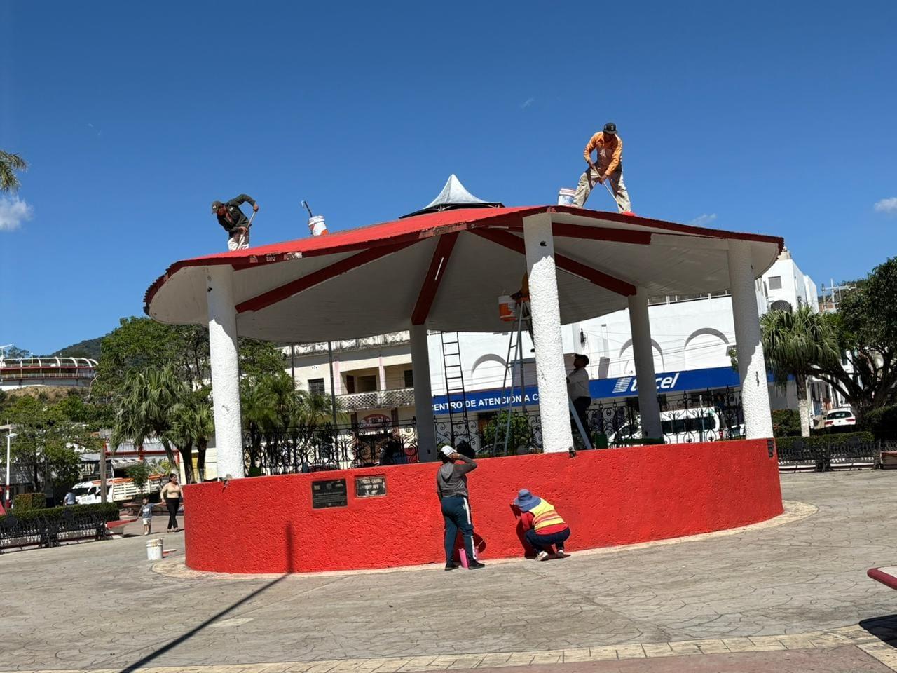 El Gobierno Municipal de Tonalá, Chiapas 2024 - 2027 que dirige el Ing. Manuel Narcia Coutiño a través de la dirección de servicios primarios lleva a acabo la pinta del parque central Esperanza.Además de pintar para poder adornar con motivo de las fiestas decembrinas, también se podan las pal...