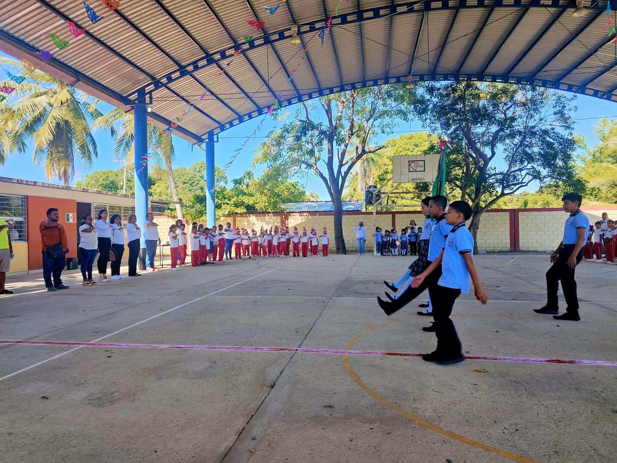 Asisten funcionarias públicas municipales a acto cívico en la escuela Primaria Benito Juárez García, en Puerto Arista.Fue Guisela Toro de la Cruz, síndico municipal en representación del presidente municipal Manuel Narcia Coutiño quien junto a las Regidoras Nayade Escobar y Saramar Decuir acu...